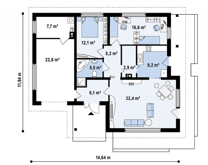 Наружные стены обеспечивают защиту от температурных перепадов, влаги и ветра. Базальтовый утеплитель и мембраны делают дом энергоэффективным. Внутренние перегородки с звукоизоляцией создают комфортную акустику.
