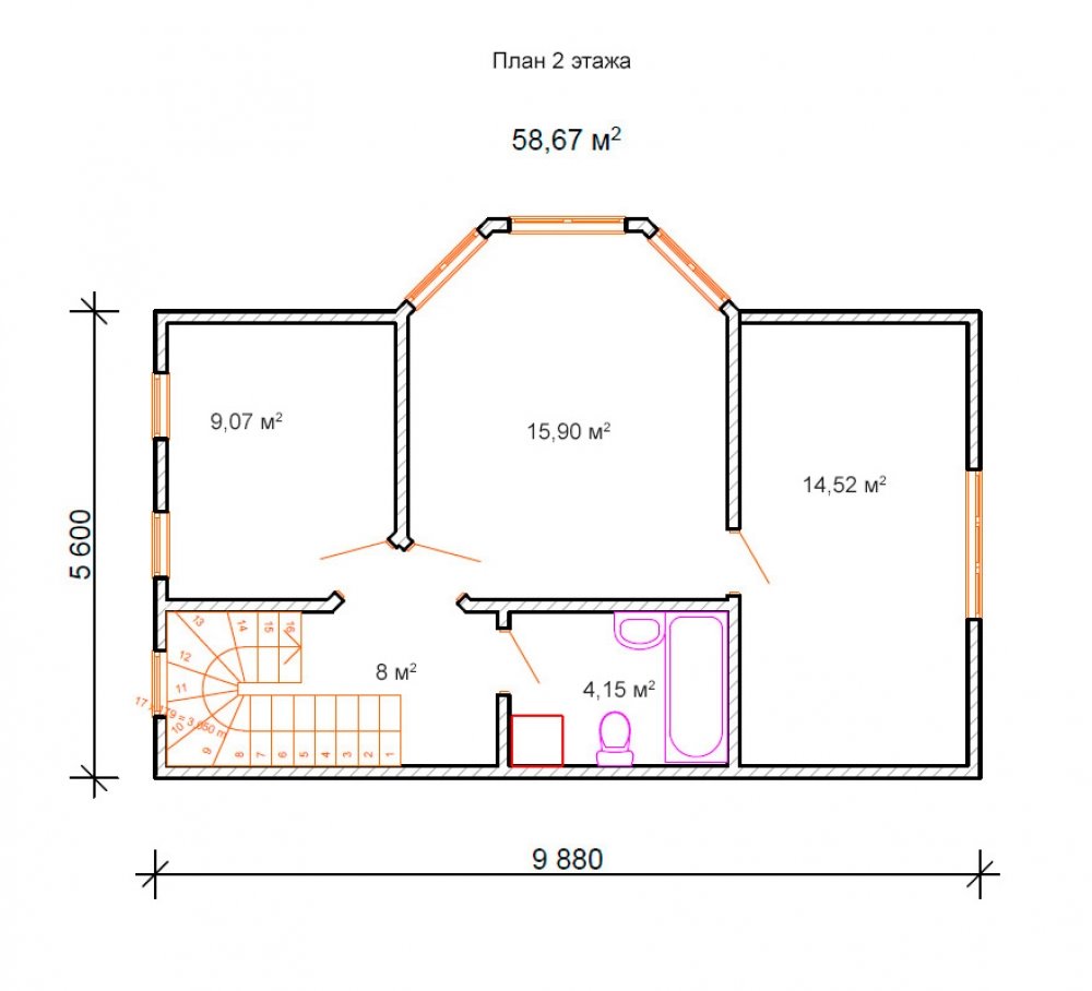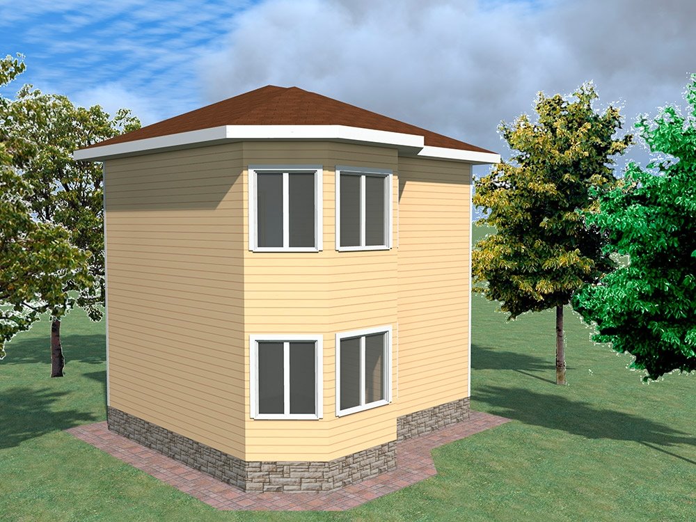 Фасад: деревянные панели 140х16 мм, имитирующие брус, с пазогребневым соединением.