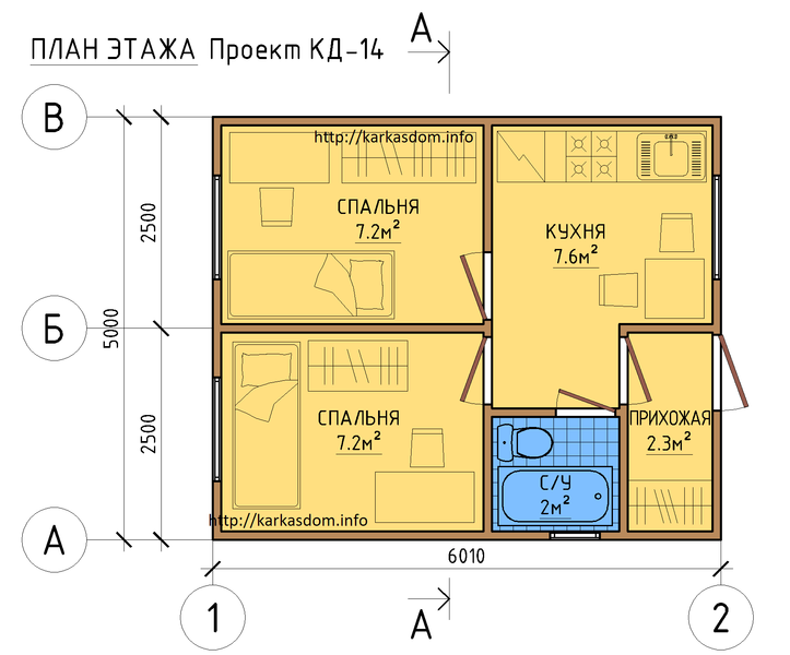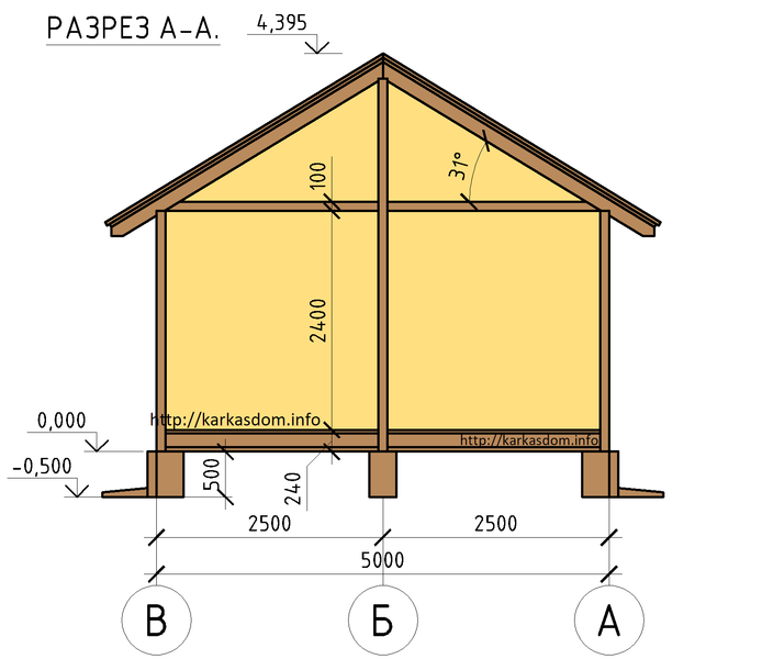 Внутренние несущие стены: каркас из доски 45х140 мм.