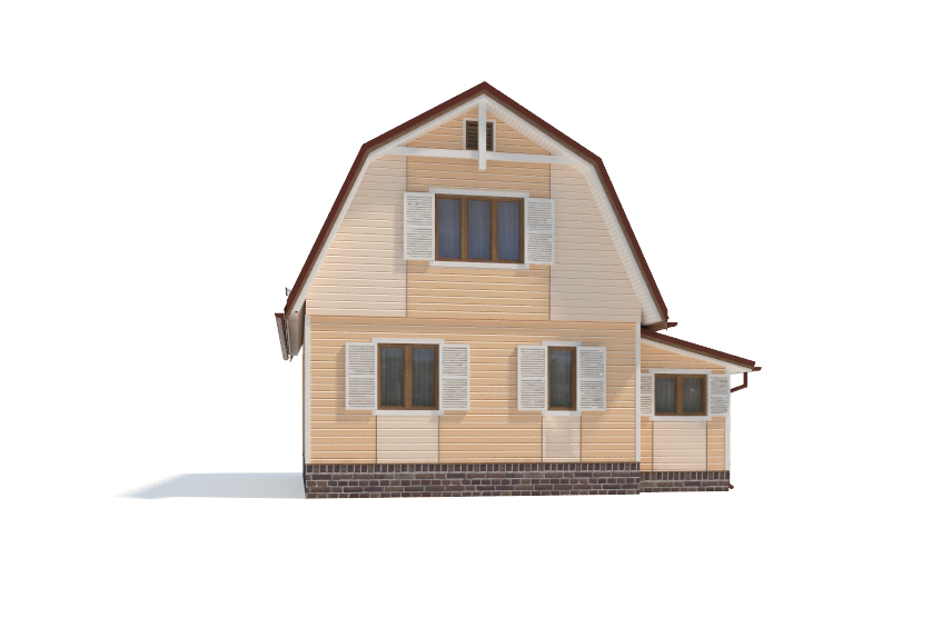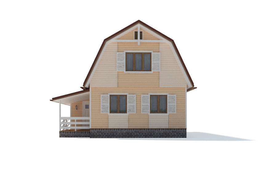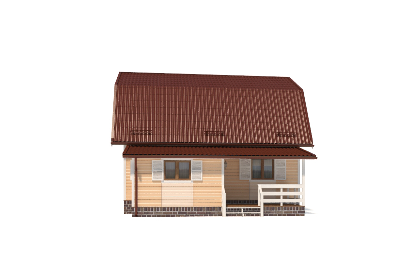 Фасад: деревянные панели 140х16 мм, имитирующие брус, с пазогребневым соединением.