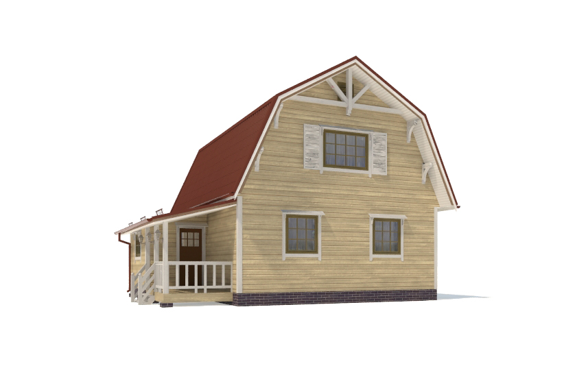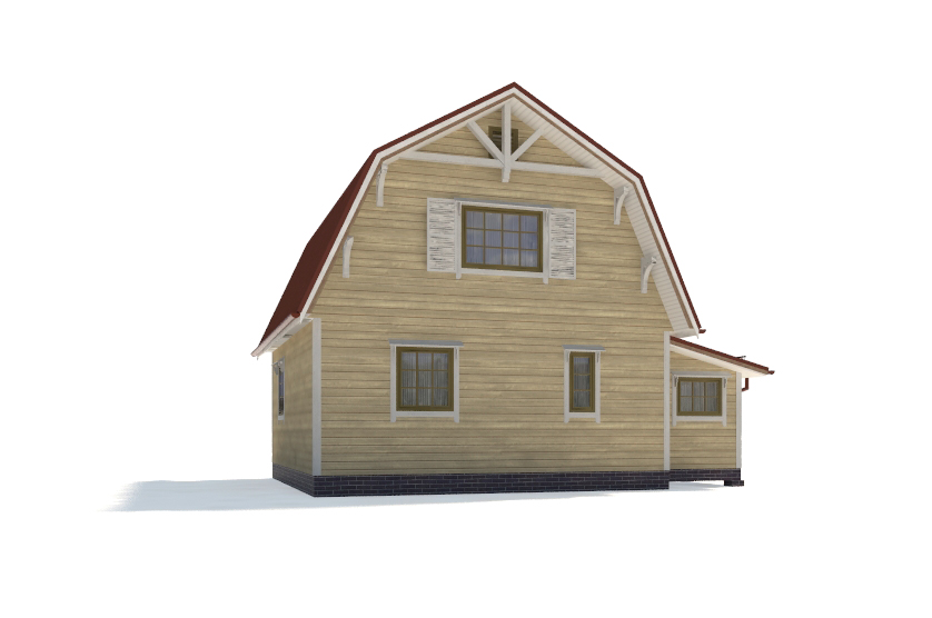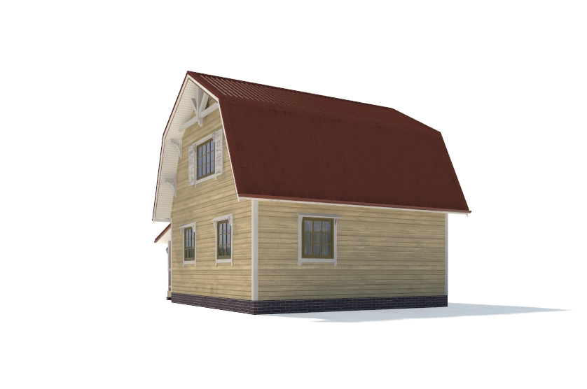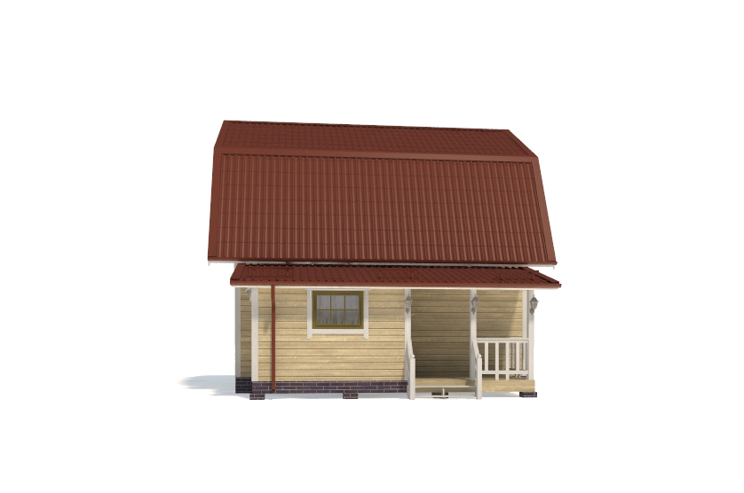 Фасад: деревянные панели 140х16 мм, имитирующие брус, с пазогребневым соединением.