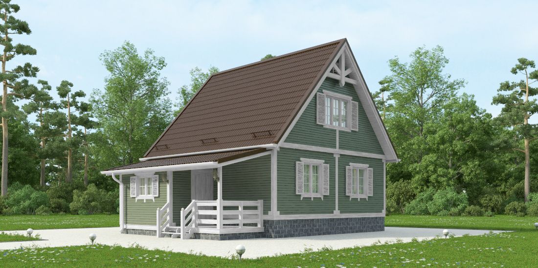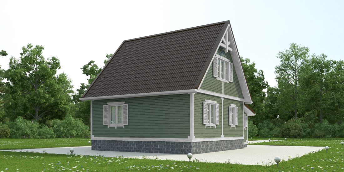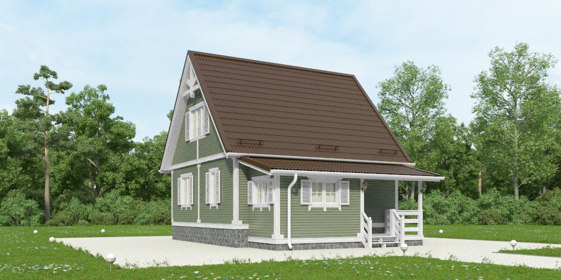 Фасад: деревянные панели 140х16 мм, имитирующие брус, с пазогребневым соединением.