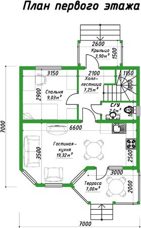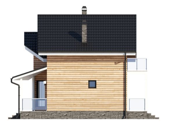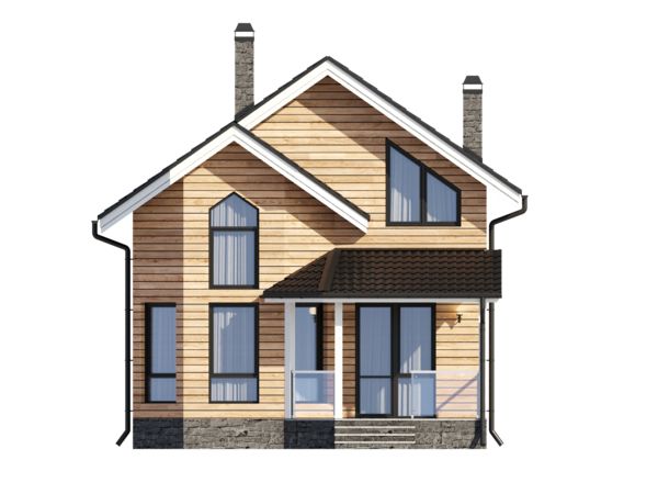 Фасад: деревянные панели 140х16 мм, имитирующие брус, с пазогребневым соединением.