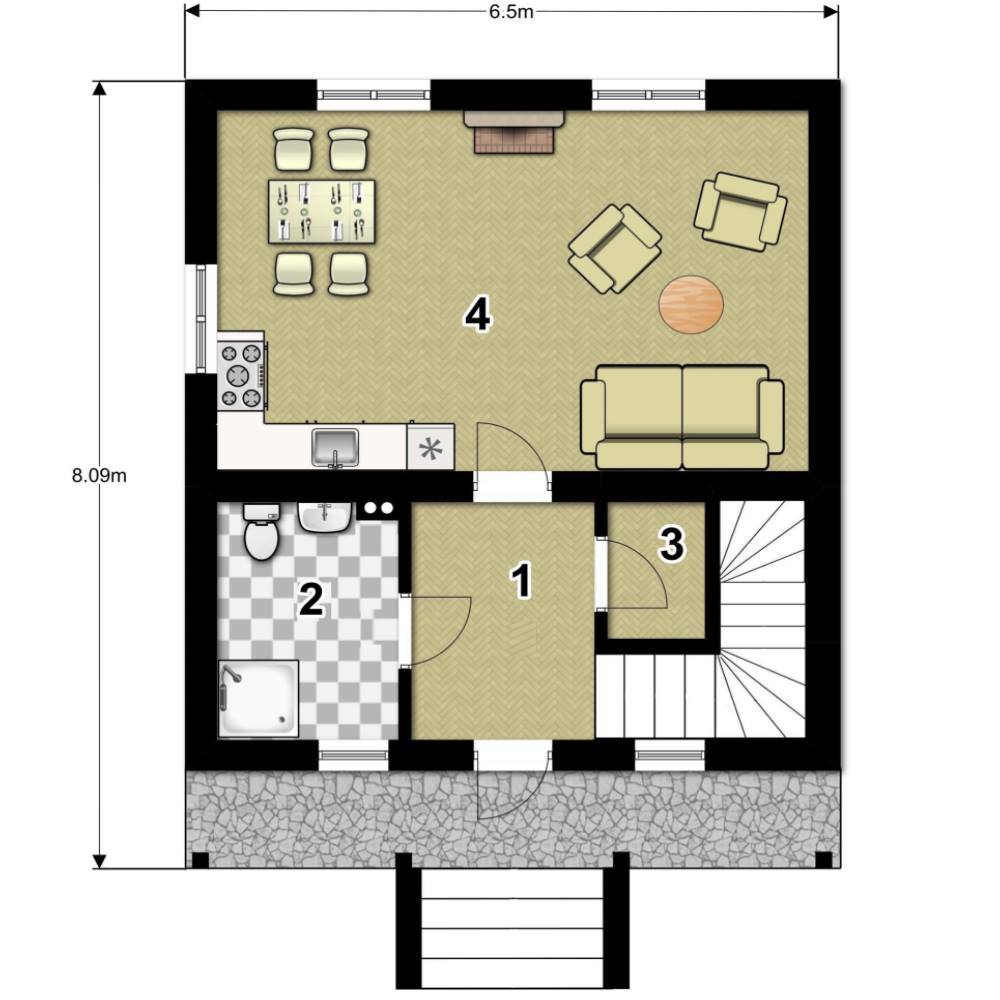 Пол: цементно-стружечная плита (ЦСП) 20 мм с гидроизоляцией под стяжку для плитки.