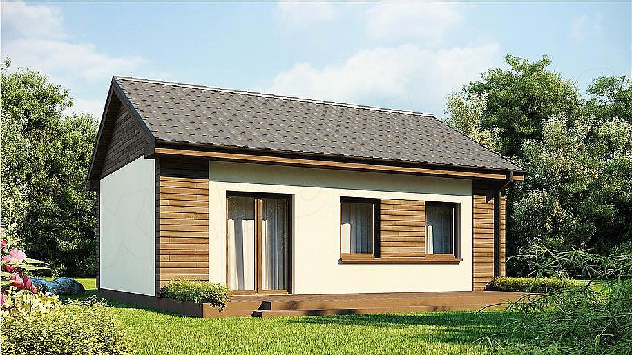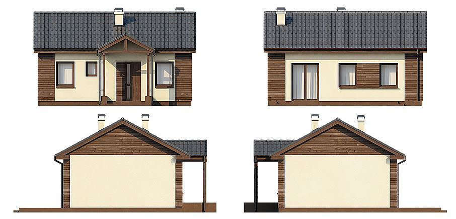 Фасад: деревянные панели 140х16 мм, имитирующие брус, с пазогребневым соединением.