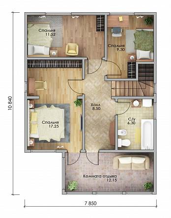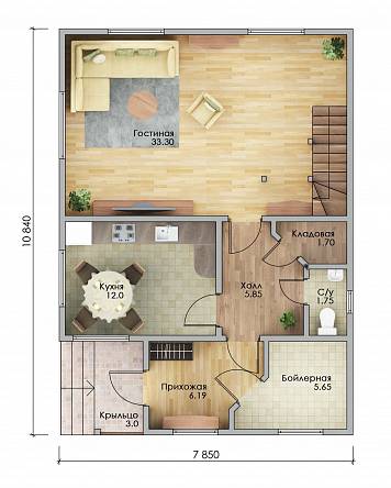 Наружные стены обеспечивают защиту от температурных перепадов, влаги и ветра. Базальтовый утеплитель и мембраны делают дом энергоэффективным. Внутренние перегородки с звукоизоляцией создают комфортную акустику.