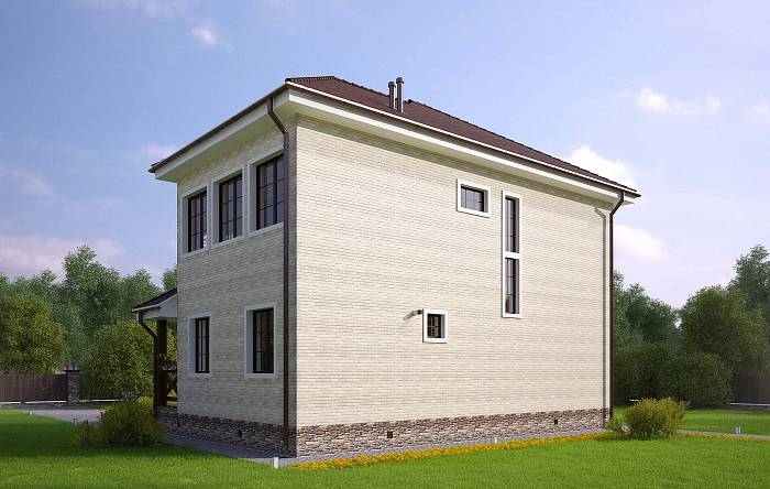 Фасад: деревянные панели 140х16 мм, имитирующие брус, с пазогребневым соединением.
