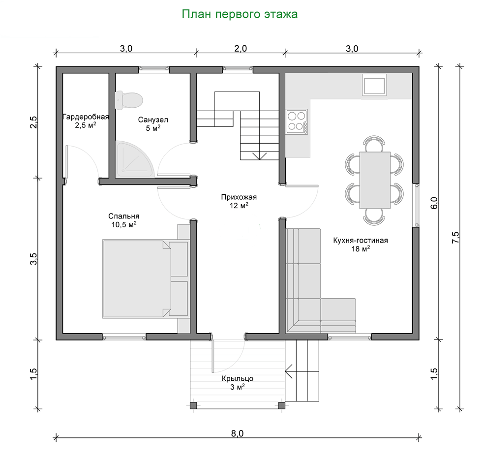 Наружные стены обеспечивают защиту от температурных перепадов, влаги и ветра. Базальтовый утеплитель и мембраны делают дом энергоэффективным. Внутренние перегородки с звукоизоляцией создают комфортную акустику.