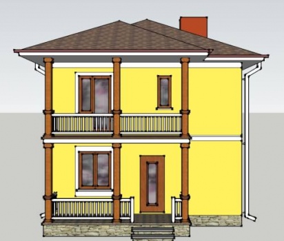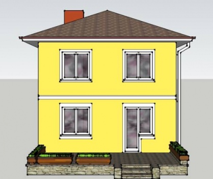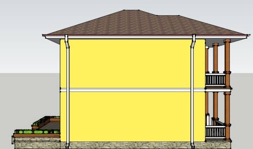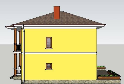 Фасад: деревянные панели 140х16 мм, имитирующие брус, с пазогребневым соединением.