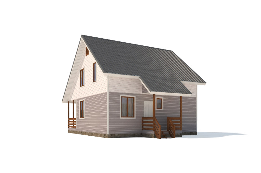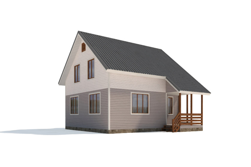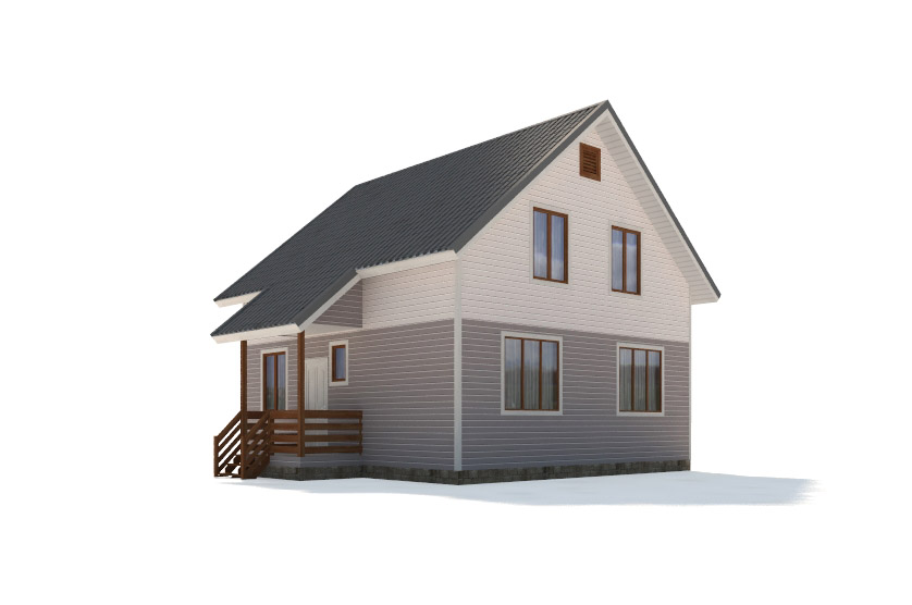 Фасад: деревянные панели 140х16 мм, имитирующие брус, с пазогребневым соединением.