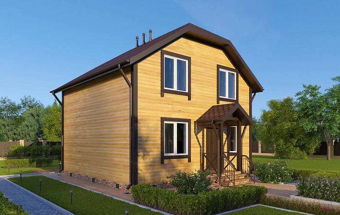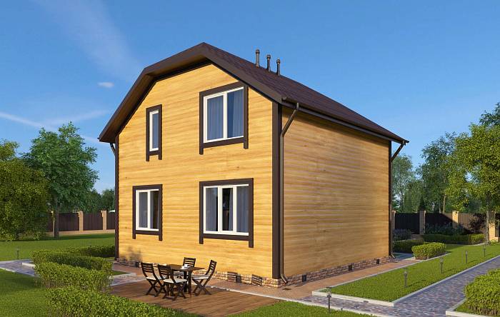 Фасад: деревянные панели 140х16 мм, имитирующие брус, с пазогребневым соединением.