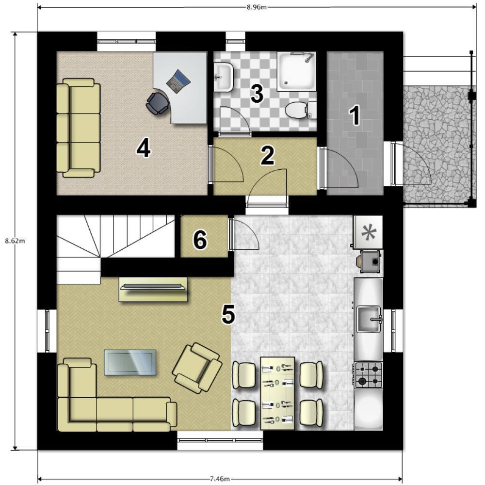 Наружные стены обеспечивают защиту от температурных перепадов, влаги и ветра. Базальтовый утеплитель и мембраны делают дом энергоэффективным. Внутренние перегородки с звукоизоляцией создают комфортную акустику.