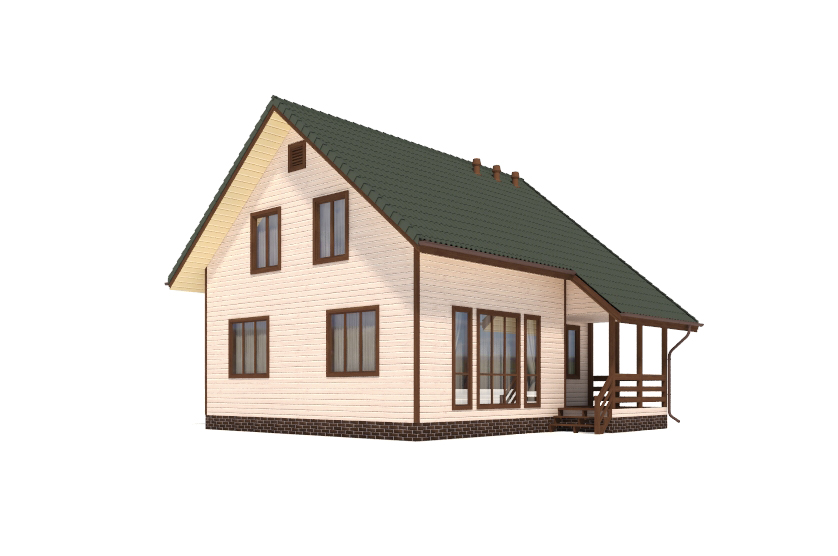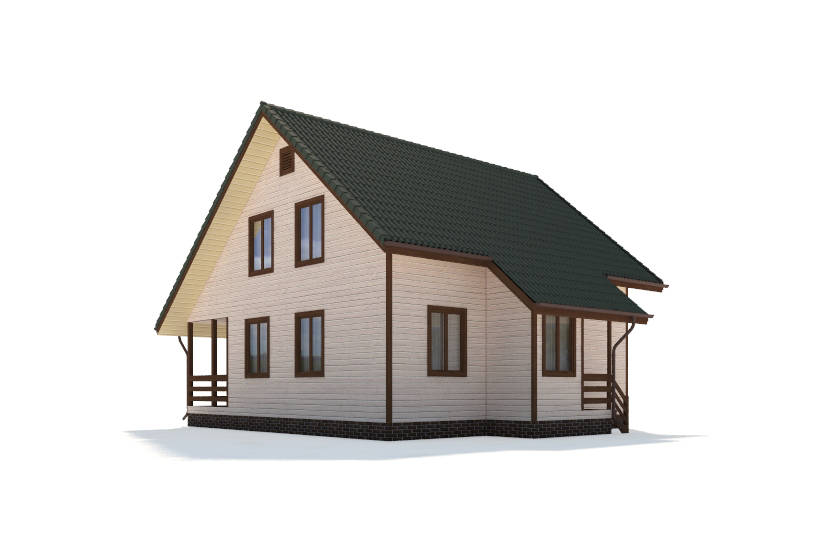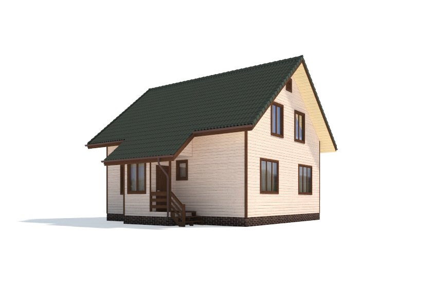Фасад: деревянные панели 140х16 мм, имитирующие брус, с пазогребневым соединением.