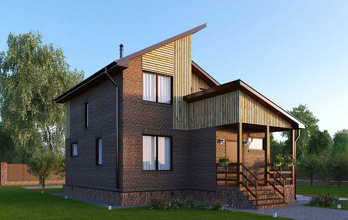 • Фасад: деревянные панели 140х16 мм, имитирующие брус, с пазогребневым соединением.