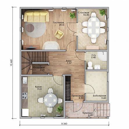 Наружные стены обеспечивают защиту от температурных перепадов, влаги и ветра. Базальтовый утеплитель и мембраны делают дом энергоэффективным. Внутренние перегородки с звукоизоляцией создают комфортную акустику.