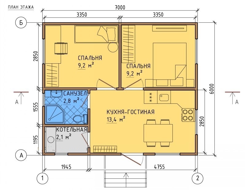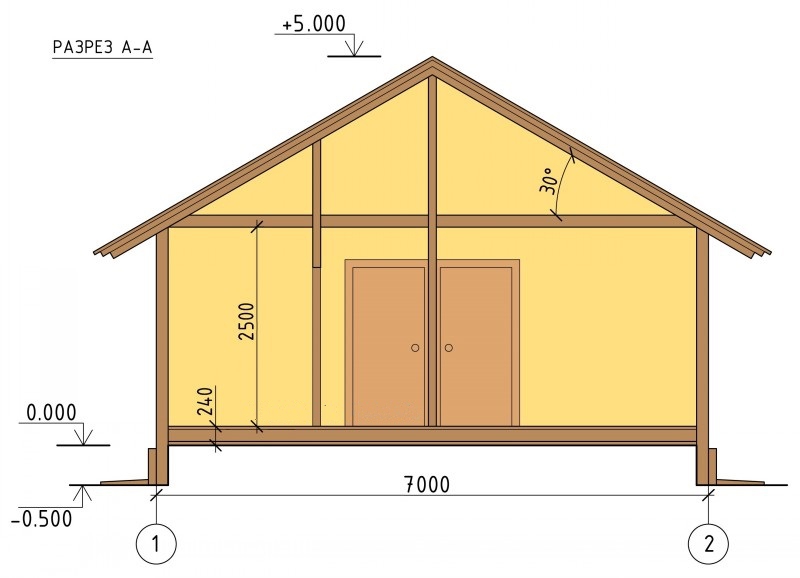 Внутренние несущие стены: каркас из доски 45х140 мм.