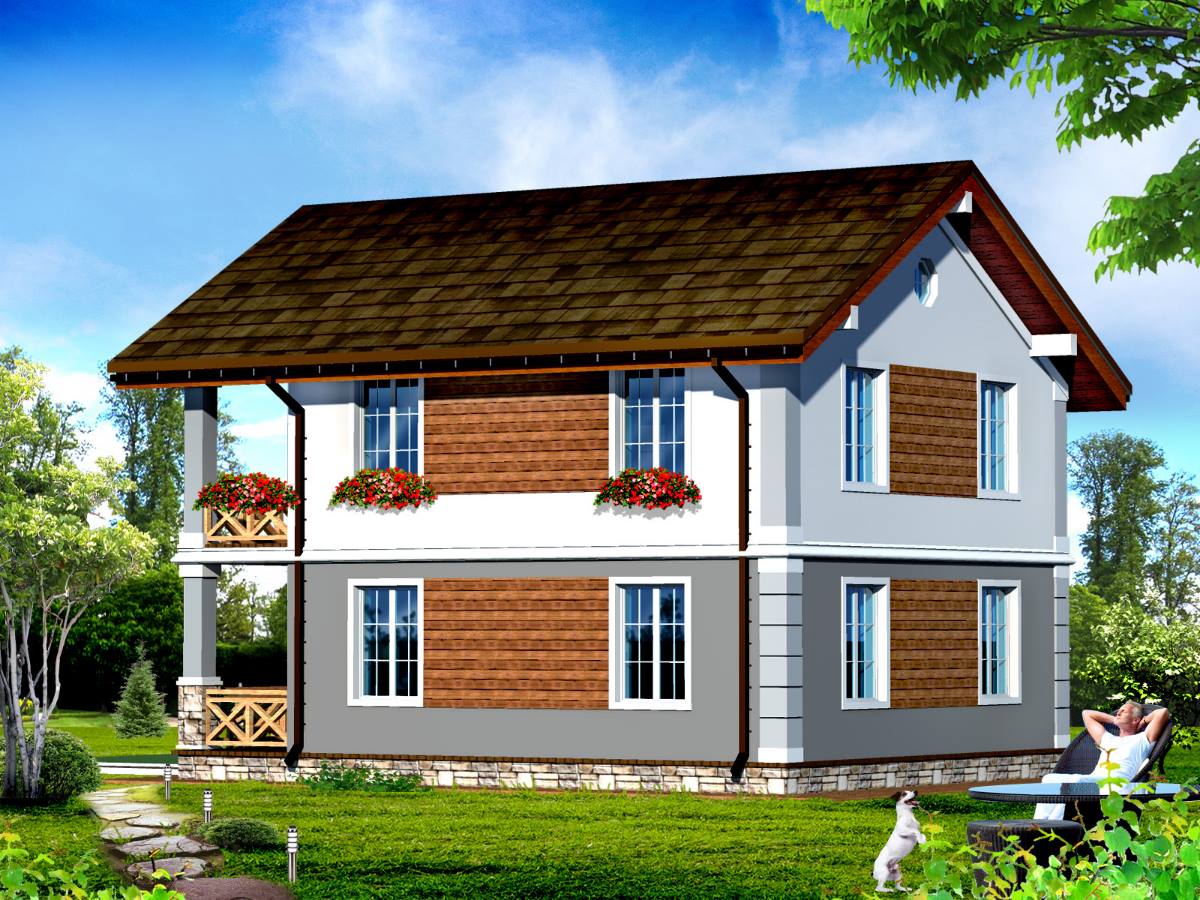Фасад: деревянные панели 140х16 мм, имитирующие брус, с пазогребневым соединением.