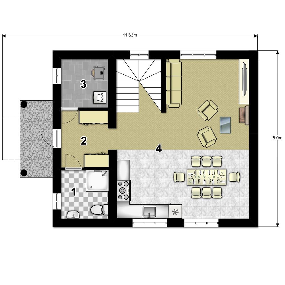 Наружные стены обеспечивают защиту от температурных перепадов, влаги и ветра. Базальтовый утеплитель и мембраны делают дом энергоэффективным. Внутренние перегородки с звукоизоляцией создают комфортную акустику.