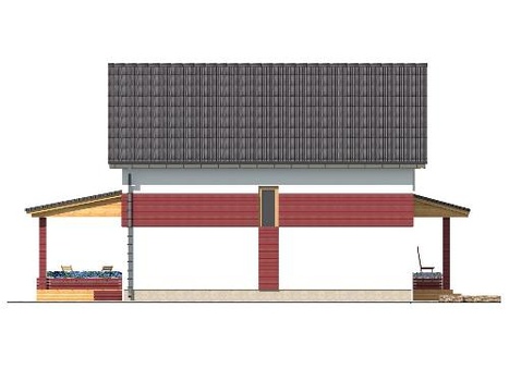 Фасад: деревянные панели 140х16 мм, имитирующие брус, с пазогребневым соединением.