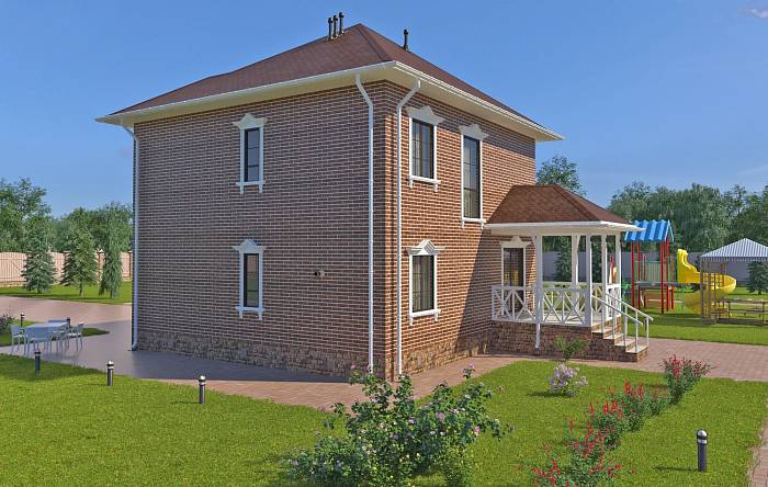 Фасад: деревянные панели 140х16 мм, имитирующие брус, с пазогребневым соединением.