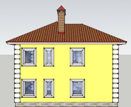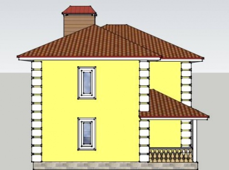 Фасад: деревянные панели 140х16 мм, имитирующие брус, с пазогребневым соединением.