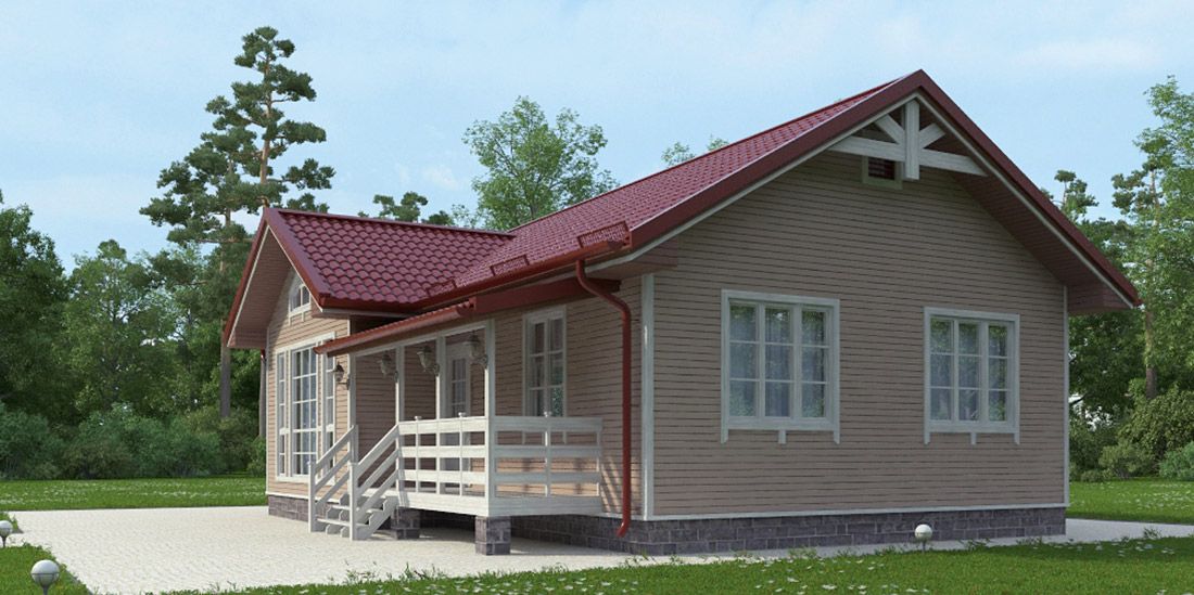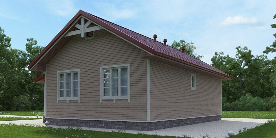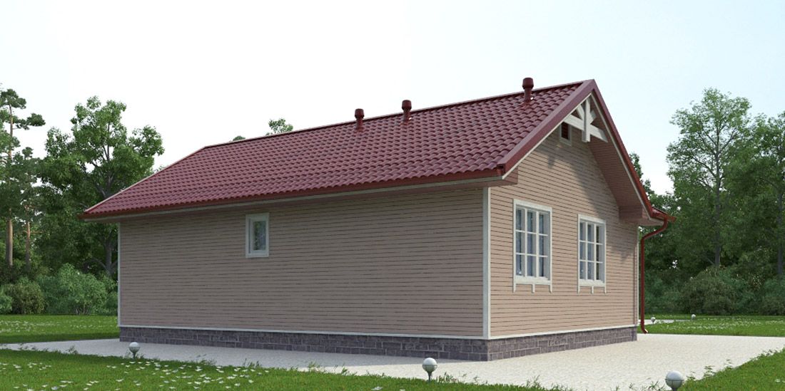 Фасад: деревянные панели 140х16 мм, имитирующие брус, с пазогребневым соединением.