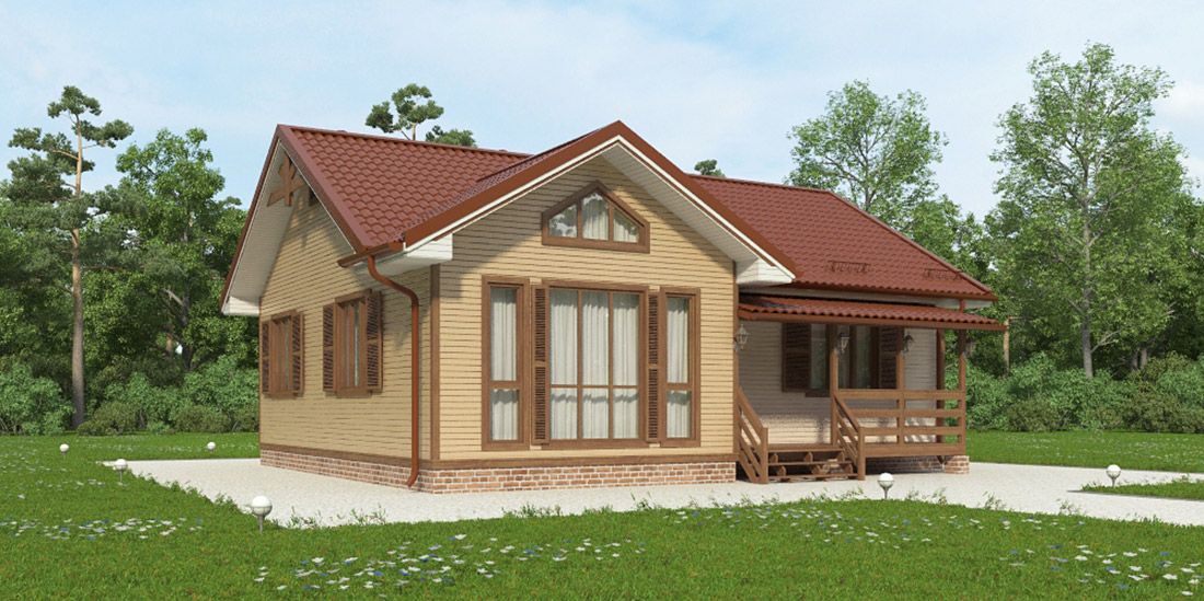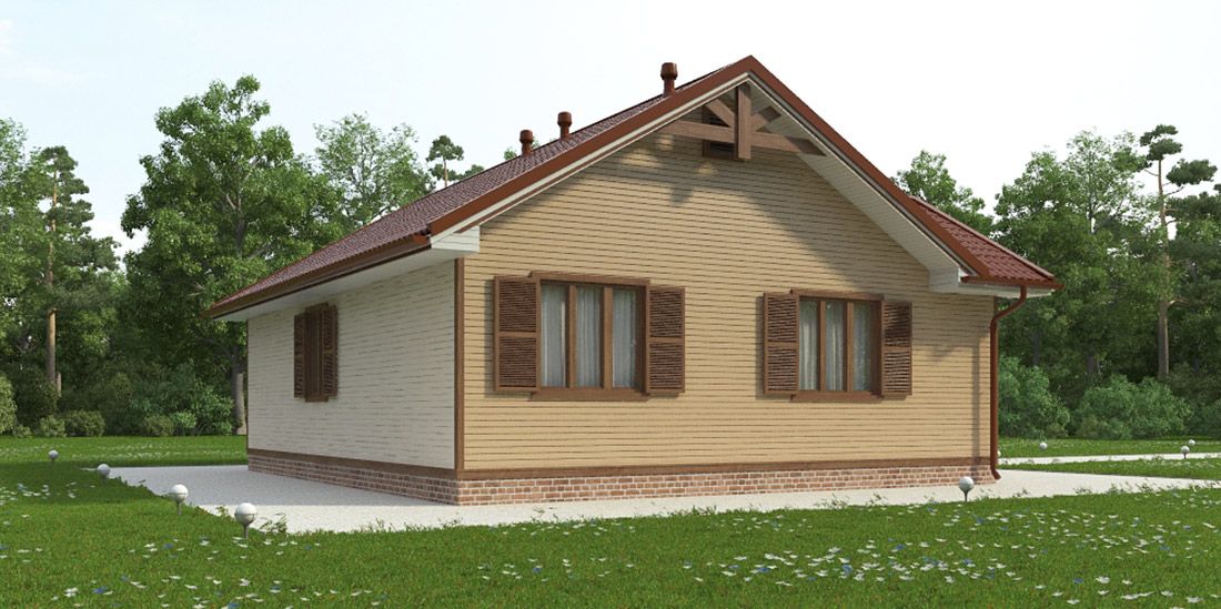 Фасад: деревянные панели 140х16 мм, имитирующие брус, с пазогребневым соединением.