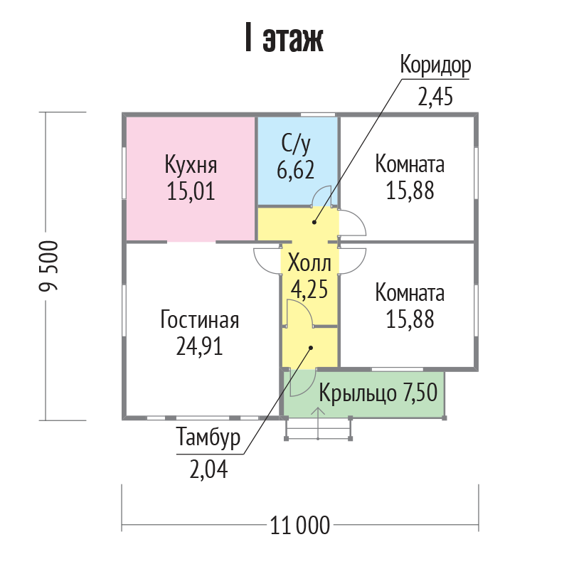 Наружные стены обеспечивают защиту от температурных перепадов, влаги и ветра. Базальтовый утеплитель и мембраны делают дом энергоэффективным. Внутренние перегородки с звукоизоляцией создают комфортную акустику.