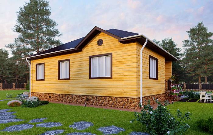 • Фасад: деревянные панели 140х16 мм, имитирующие брус, с пазогребневым соединением.