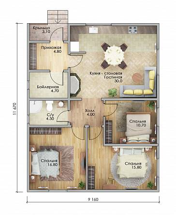 Наружные стены обеспечивают защиту от температурных перепадов, влаги и ветра. Базальтовый утеплитель и мембраны делают дом энергоэффективным. Внутренние перегородки с звукоизоляцией создают комфортную акустику.