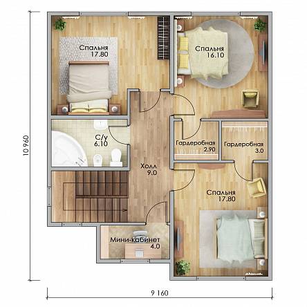 Наружные стены обеспечивают защиту от температурных перепадов, влаги и ветра. Базальтовый утеплитель и мембраны делают дом энергоэффективным. Внутренние перегородки с звукоизоляцией создают комфортную акустику.