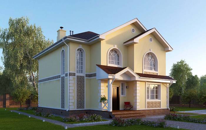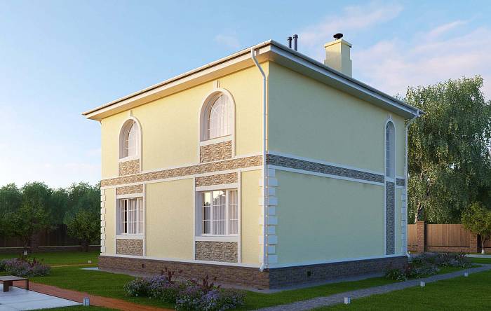 Фасад: деревянные панели 140х16 мм, имитирующие брус, с пазогребневым соединением.