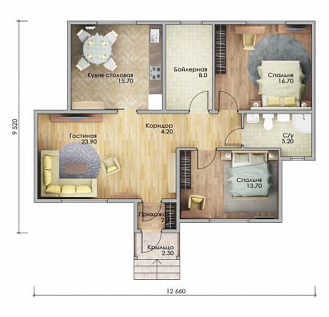 Наружные стены обеспечивают защиту от температурных перепадов, влаги и ветра. Базальтовый утеплитель и мембраны делают дом энергоэффективным. Внутренние перегородки с звукоизоляцией создают комфортную акустику.