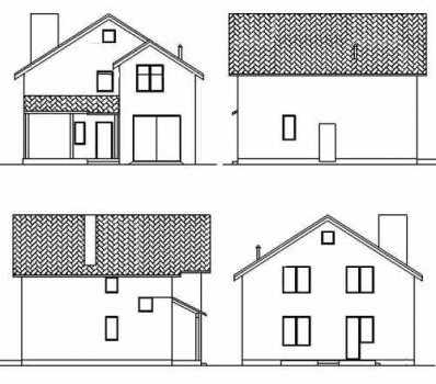 Фасад: деревянные панели 140х16 мм, имитирующие брус, с пазогребневым соединением.