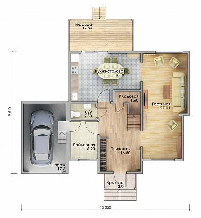 Наружные стены обеспечивают защиту от температурных перепадов, влаги и ветра. Базальтовый утеплитель и мембраны делают дом энергоэффективным. Внутренние перегородки с звукоизоляцией создают комфортную акустику.
