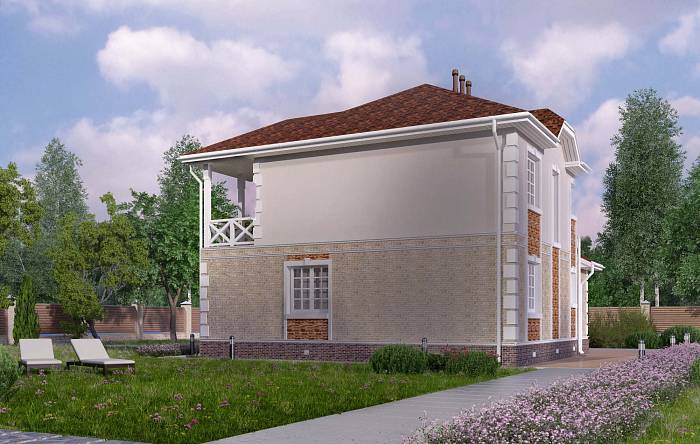 Фасад: деревянные панели 140х16 мм, имитирующие брус, с пазогребневым соединением.