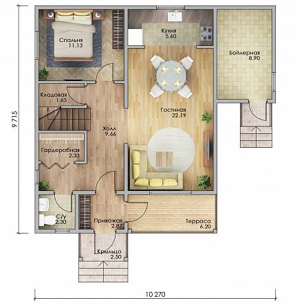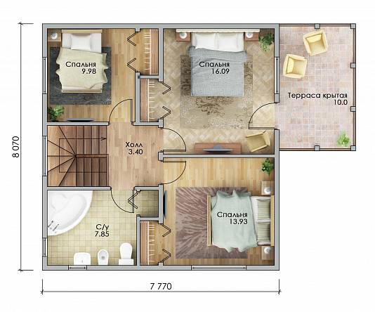 Наружные стены обеспечивают защиту от температурных перепадов, влаги и ветра. Базальтовый утеплитель и мембраны делают дом энергоэффективным. Внутренние перегородки с звукоизоляцией создают комфортную акустику.
