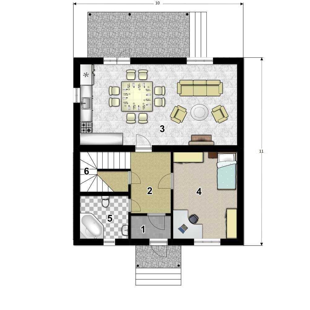 Наружные стены обеспечивают защиту от температурных перепадов, влаги и ветра. Базальтовый утеплитель и мембраны делают дом энергоэффективным. Внутренние перегородки с звукоизоляцией создают комфортную акустику.