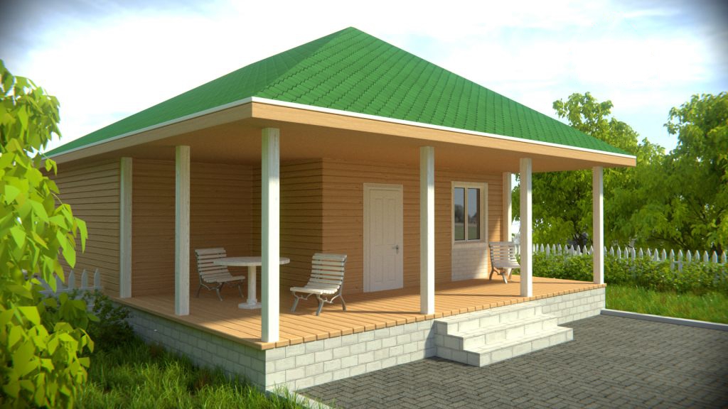 Фасад: деревянные панели 140х16 мм, имитирующие брус, с пазогребневым соединением.