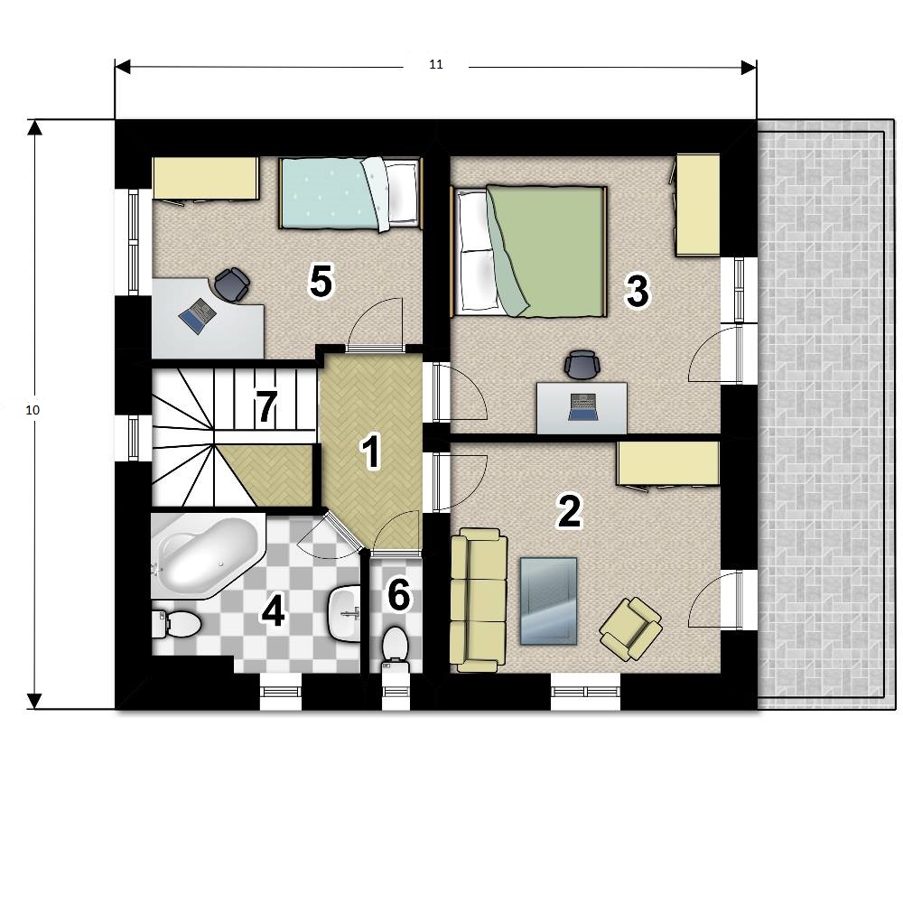 • Окна: ПВХ REHAU Grazio с 2-камерным стеклопакетом (3 стекла), 5-камерный профиль толщиной 70 мм. Комплектация включает подоконники, отливы и москитные сетки.