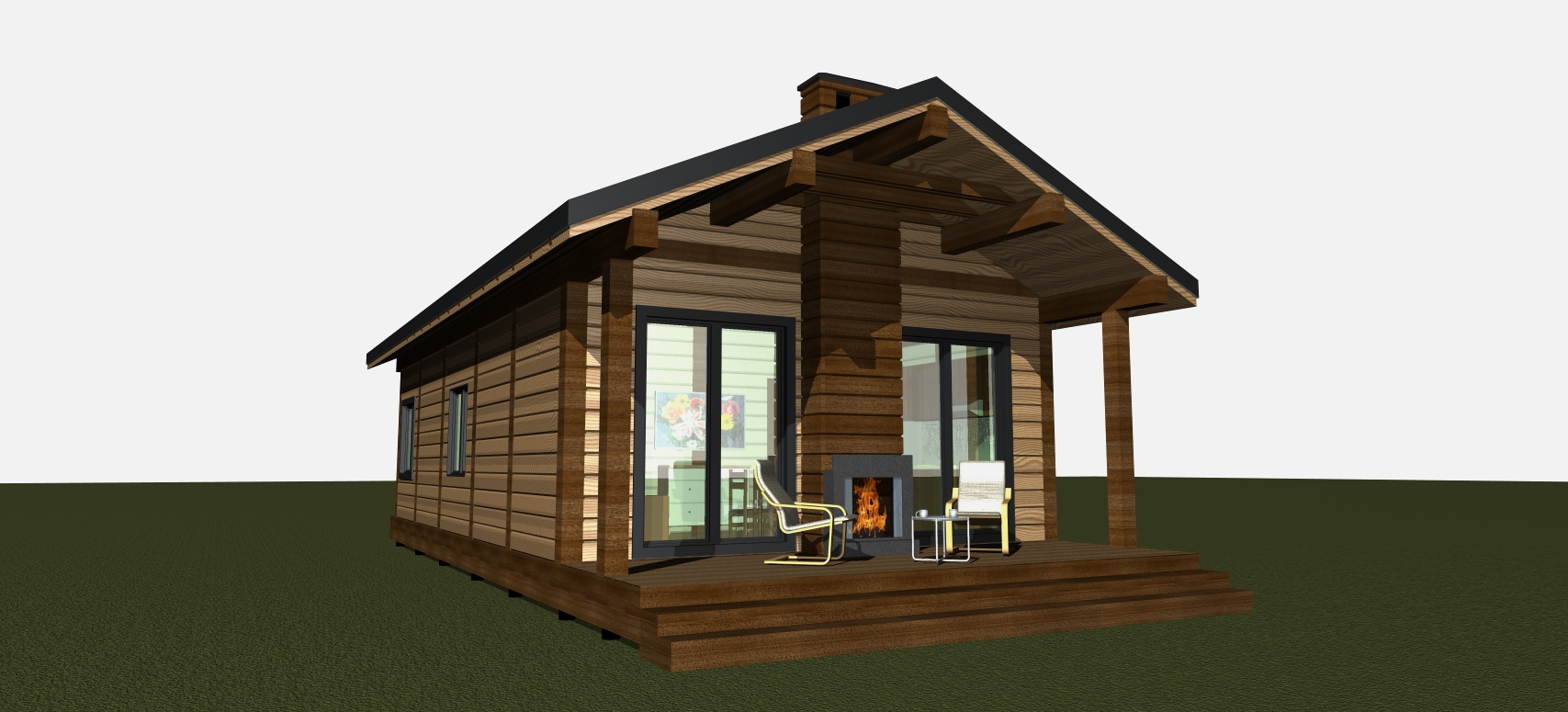 Фасад: деревянные панели 140х16 мм, имитирующие брус, с пазогребневым соединением.