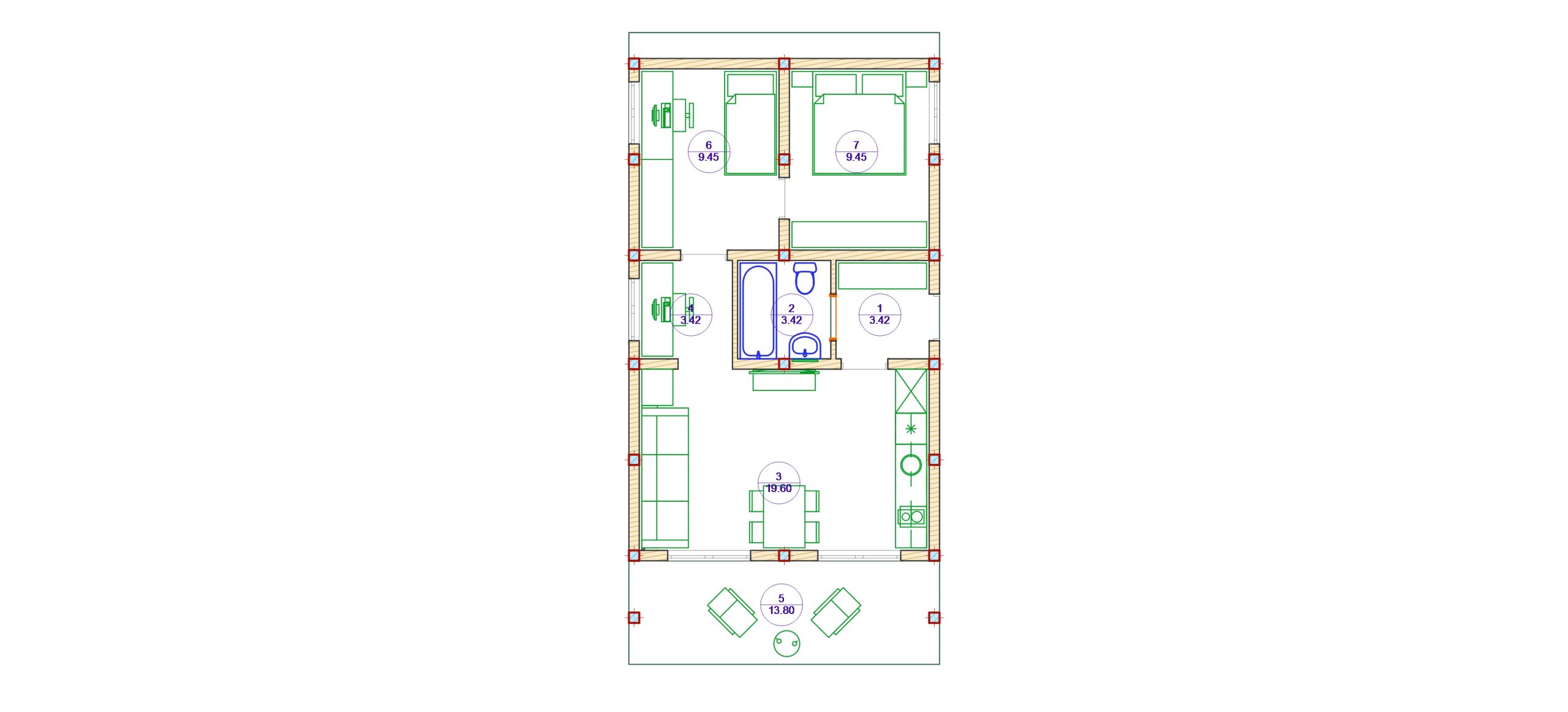 Внутренние несущие стены: каркас из доски 45х140 мм.