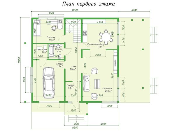 Окна: ПВХ REHAU Grazio с 2-камерным стеклопакетом (3 стекла), 5-камерный профиль толщиной 70 мм. Комплектация включает подоконники, отливы и москитные сетки.