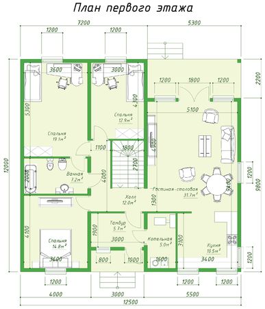 Наружные стены обеспечивают защиту от температурных перепадов, влаги и ветра. Базальтовый утеплитель и мембраны делают дом энергоэффективным. Внутренние перегородки с звукоизоляцией создают комфортную акустику.