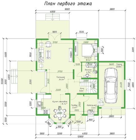 Наружные стены обеспечивают защиту от температурных перепадов, влаги и ветра. Базальтовый утеплитель и мембраны делают дом энергоэффективным. Внутренние перегородки с звукоизоляцией создают комфортную акустику.