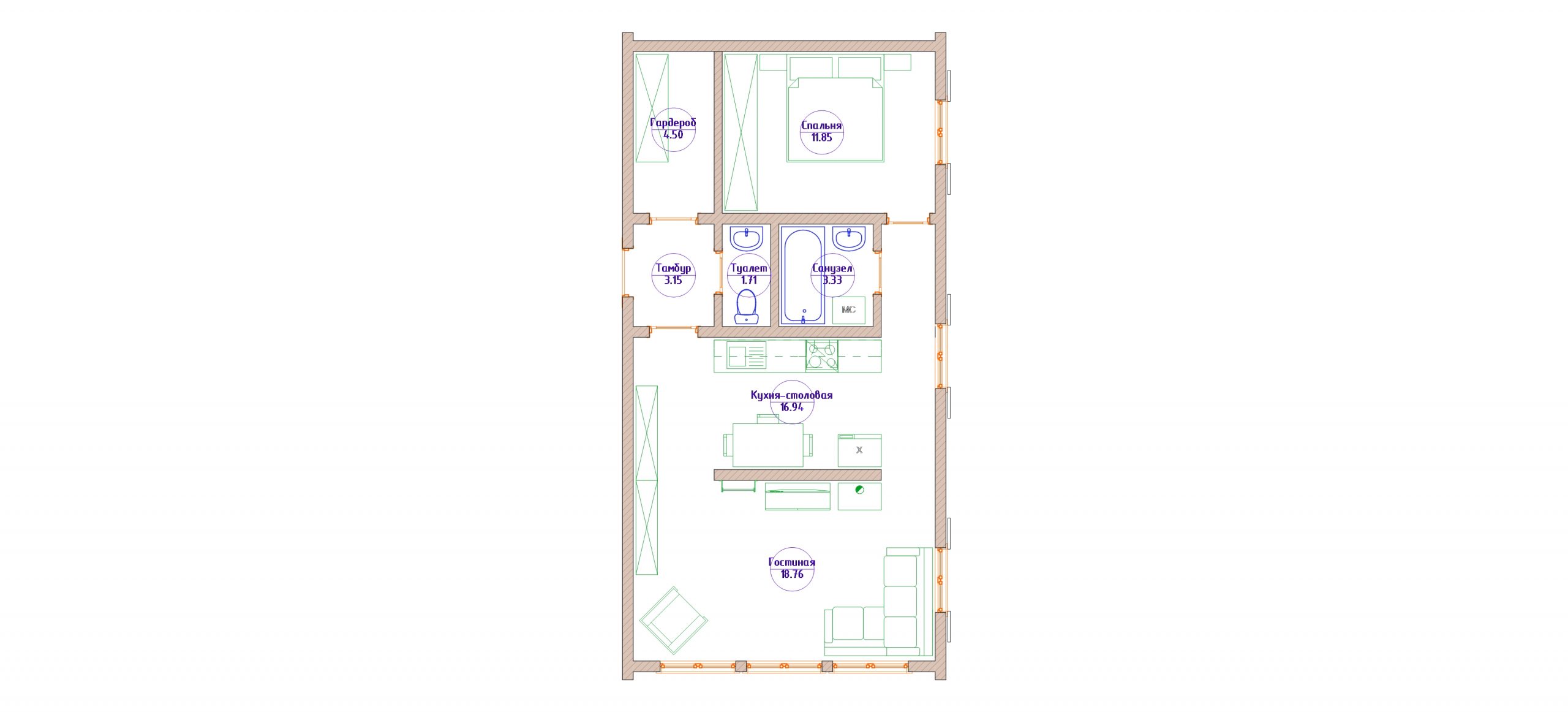 • Пол: цементно-стружечная плита (ЦСП) 20 мм с гидроизоляцией под стяжку для плитки.