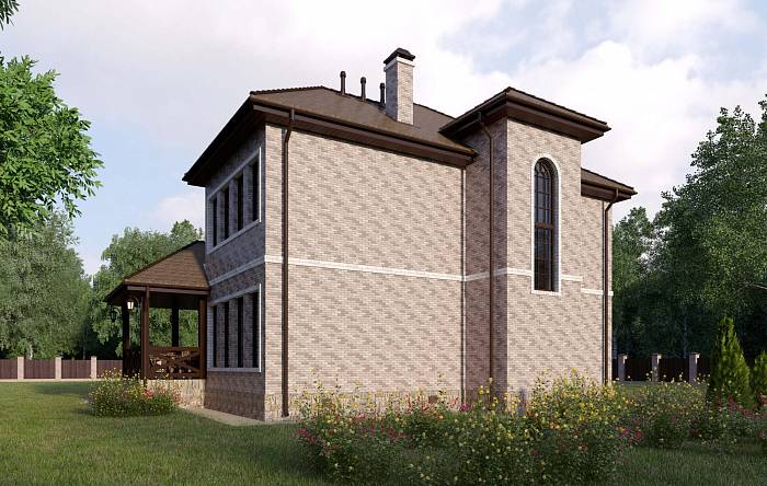Фасад: деревянные панели 140х16 мм, имитирующие брус, с пазогребневым соединением.