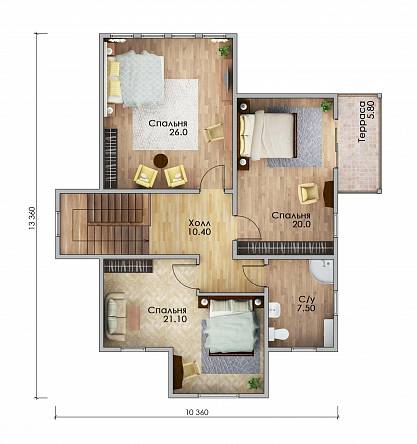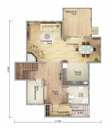 Наружные стены обеспечивают защиту от температурных перепадов, влаги и ветра. Базальтовый утеплитель и мембраны делают дом энергоэффективным. Внутренние перегородки с звукоизоляцией создают комфортную акустику.