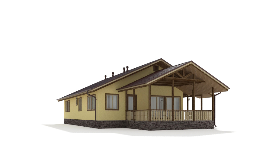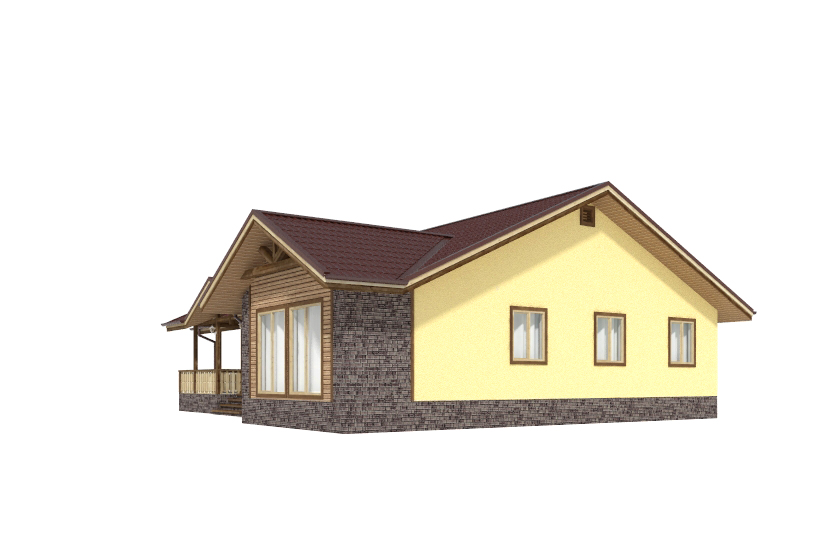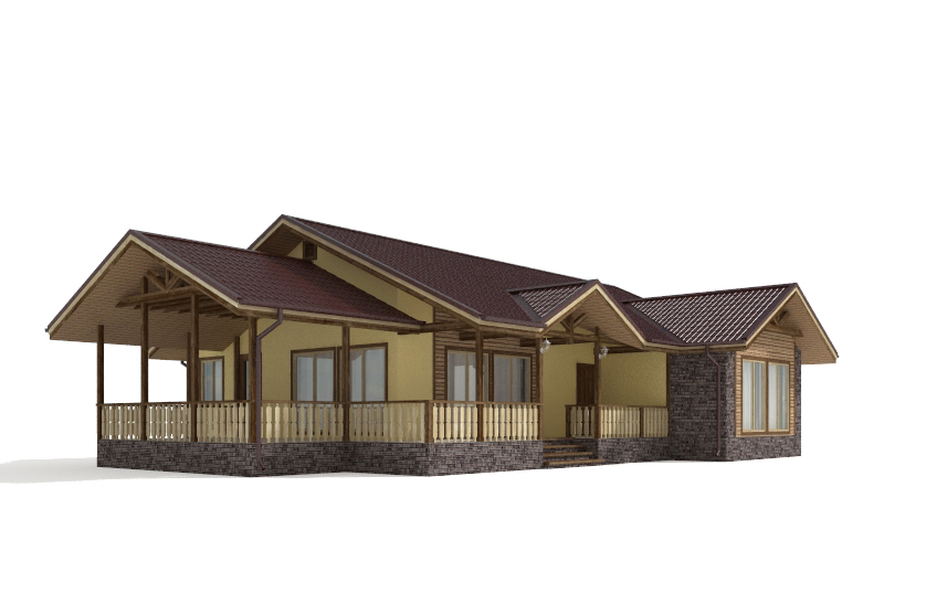 Фасад: деревянные панели 140х16 мм, имитирующие брус, с пазогребневым соединением.