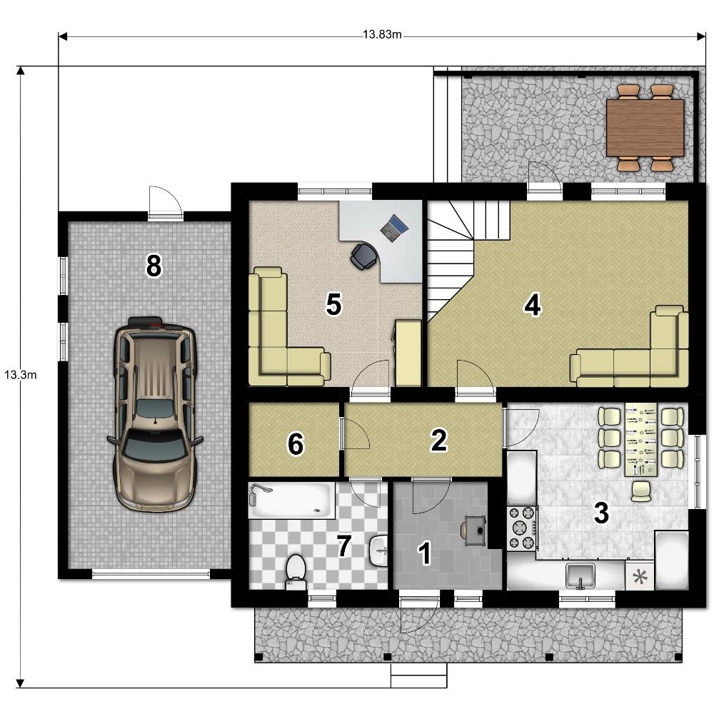 Окна: ПВХ REHAU Grazio с 2-камерным стеклопакетом (3 стекла), 5-камерный профиль толщиной 70 мм. Комплектация включает подоконники, отливы и москитные сетки.